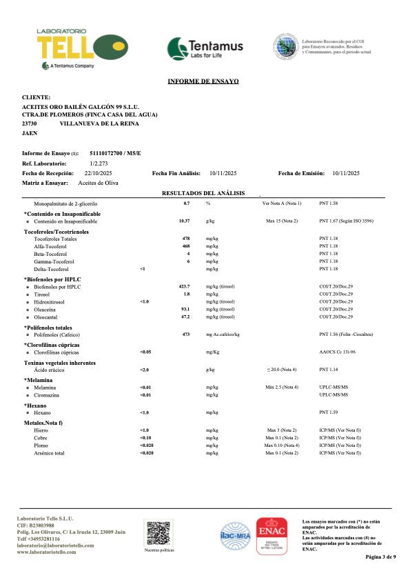 Hojiblanca (2025/2026 new harvest) is the mildest premium olive oil in the range of Oro Bailen, one of the world's most awarded olive oil producers (99 points score in Flos Olei, the international olive oil guide) based in Jaen, Andalusia and run by José Galvez, after taking over the family business. This ultra-low acidity (0.1%) single estate premium extra virgin olive oil is typically produced in October during the first 2 weeks of harvest. It is cold-extracted within 2 hours and filtered to preserve its taste and quality throughout its shelf life. It is a mild fruity and very balanced extra virgin olive oil with aromas of artichokes, tomatoes and apples and hints of fennel and peppermint. Its delicate profile makes it particularly versatile. We recommend it for salads, seafood and fish. The Oro Bailen Hojiblanca extra virgin olive oil has a high polyphenol content of 423 mg/kg.